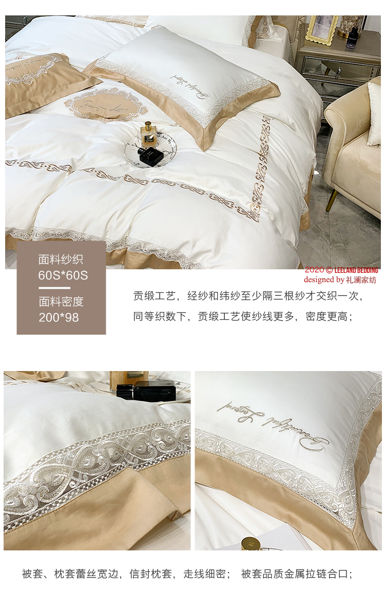 LEELLAND礼澜家紡欧式軽奢60本の綿刺繍ベッドの上に五つ星ホテルのベッド用品の純綿サンプルセットバレエガール1.5-1.8メートルベッド/200*230 cm