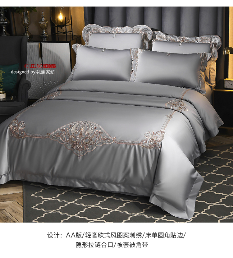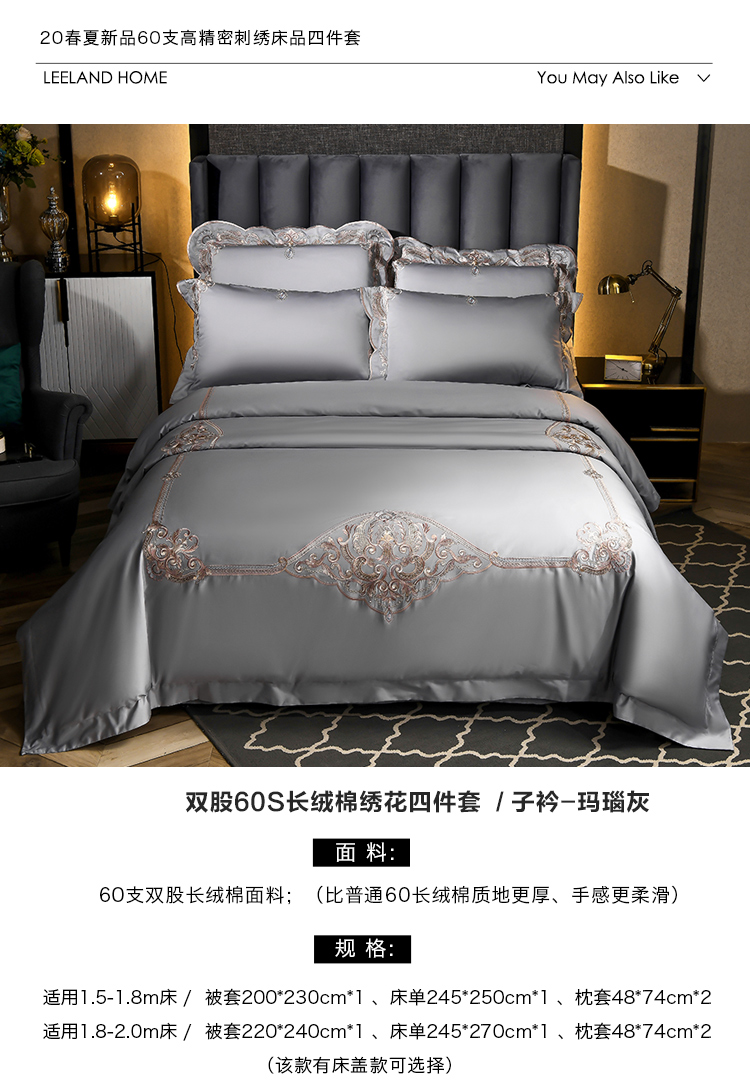 LEELLAND礼澜家紡欧式軽奢60本の綿花刺繍ベッドの上に4つのセットの純綿の貢ぎ物5つ星ホテルの別荘の見本セットの間にベッドの品セットの襟の梅紅シーツの4つのセットは1.8-2.0メートルのベッド/220*240 cmです。