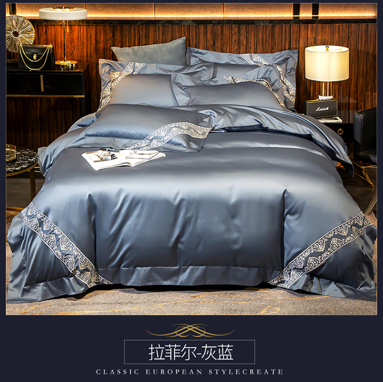 | 商品名称 | LEELLAND礼瀾家紡欧シンプルで贅沢な風の100本の綿刺繍の全綿の寝具四点セットの純綿別荘の見本セットラフィ-グレイ1.5-1.8メートルのベッド/200*230 cm |