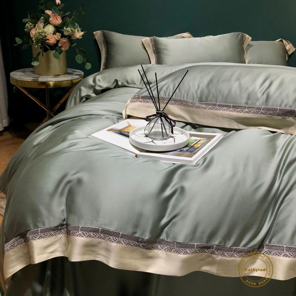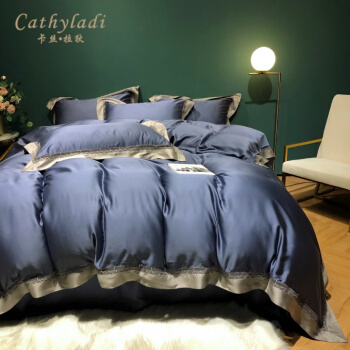 CATHYLADI 80本の夏シルクの4点セットの両面純色ライゼルレースの涼感氷糸ベッド用品グレー-天糸の透かし2.0シーツのタイプ(布団カバー220*240)【写真価格ブランドの見積】-京東