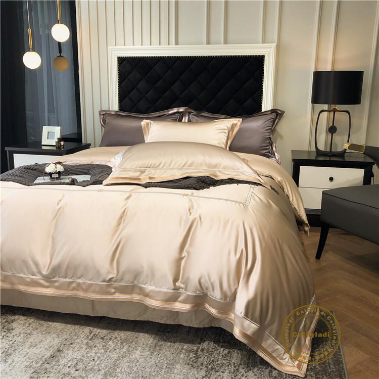 CATHYLADI真綿四点セット全綿欧米軽奢120本の純綿寝具バートン-シャンパン金2メートルベッド【布団カバー220*240】