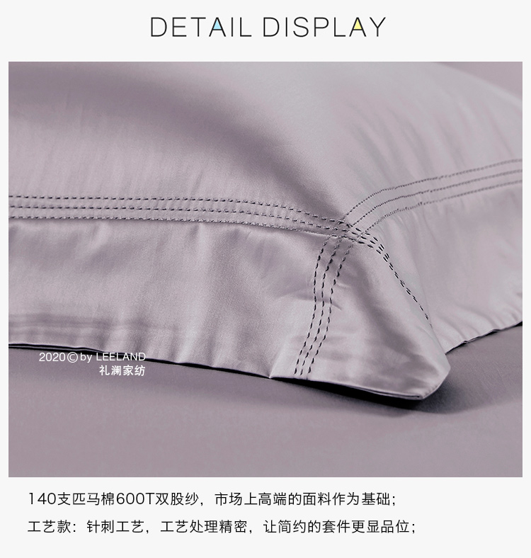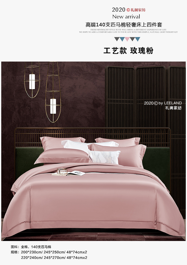 LEELLAND礼澜家紡ハイエンド純色140本の馬綿の寝具四点セット刺繍広辺高密純綿別荘サンプル間ベッドセット工芸品-軽奢カレー1.5-1.8メートルベッド/200*230 cm布団セット