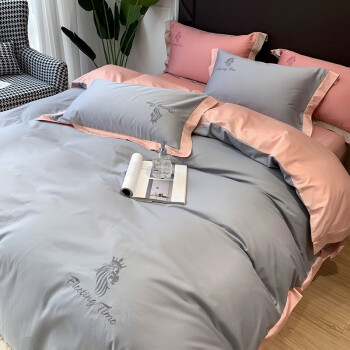 CATHYLADIベッドの上で4つのセットを輸入します。北欧風80本の綿毛の4つのセットは全綿の四季寝具の爵-極帝灰1.5メートルのベッド笠式【200 x 230 cmの芯に適します】
